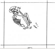 La primera tumba es de un muchacho de 12 a 13 años, echado a su costado izquierdo, cabeza al noreste, con las manos sujetadas cerca a la cara. Una vértebra de pez perforada se ha encontrado cerca a la tumba y probablemente fue usada como pendiente.